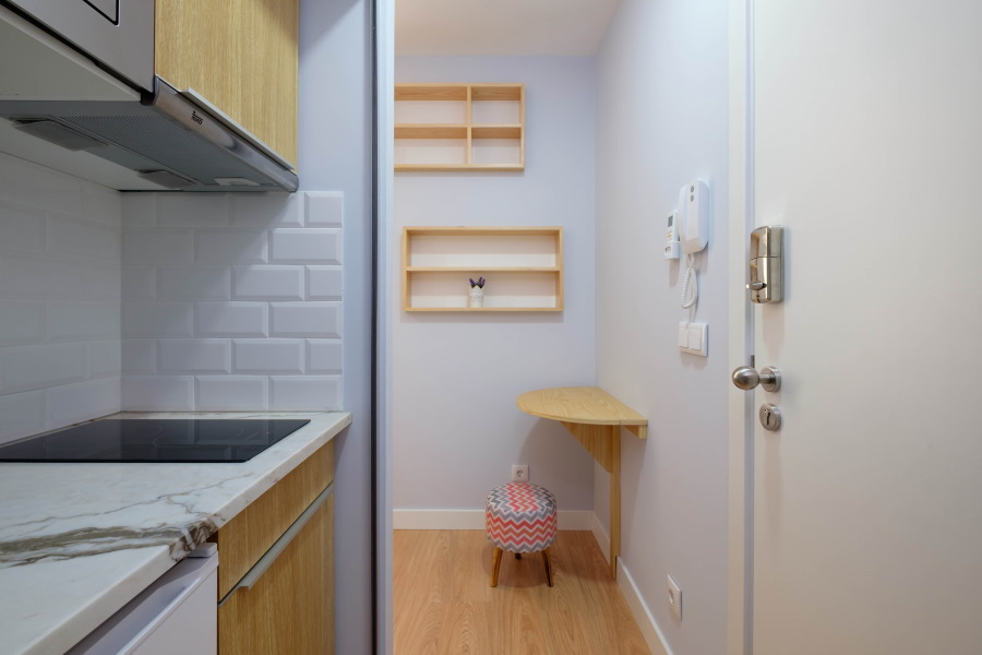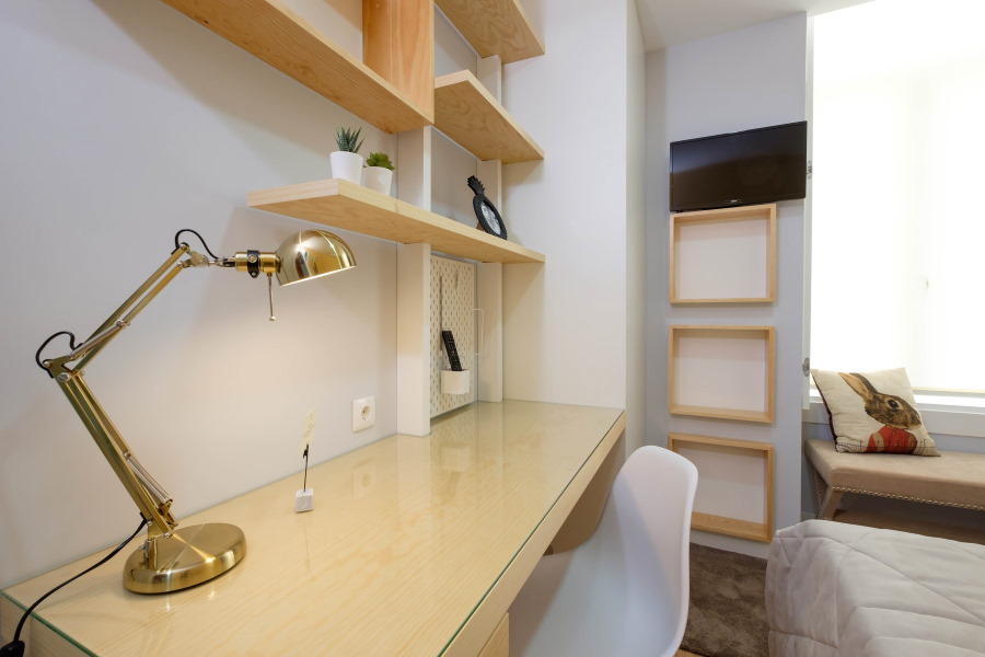 Beneficia da zona do Quarto e secretária estar isolada da zona da Kitchenette.