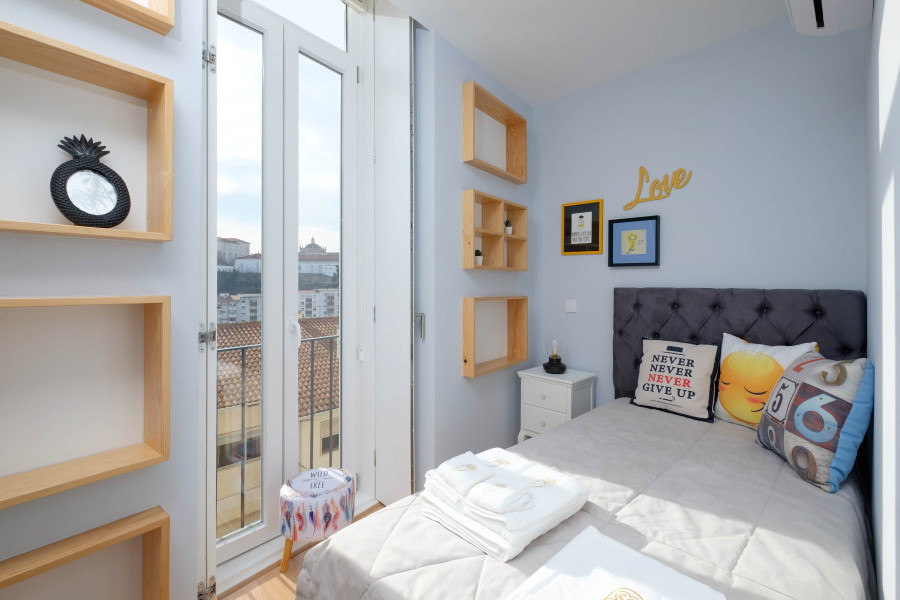 O Quarto tem uma grande portada com vistas para a zona da Universidade.
