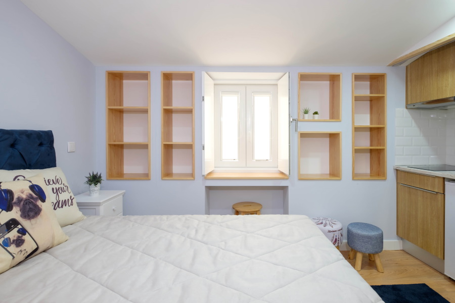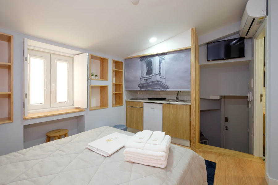 Estúdio Premium. Situado no andar de acesso ao pátio exterior.