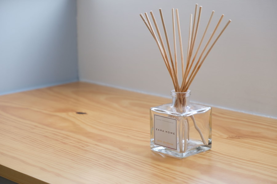 Nas paredes estão embutidos vários cubos de madeira natural, que para além de elementos decorativos, permitem a arrumação de livros e toda uma diversidade de objetos pessoais.
